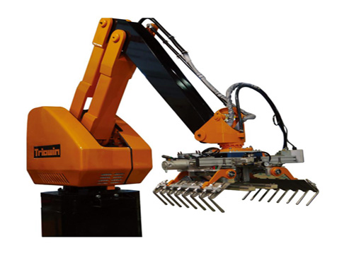 2、占地面积少。有利于客户厂房中生产线的布置,并可留出较大的库房面积。码垛机器人可以设置在狭窄的空间,即可有效的使用。